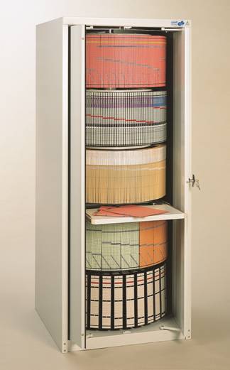 Karussellschränke mit Hängescheiben zum Aufhängen von Akten